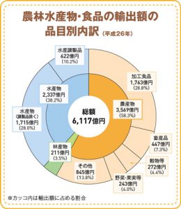 農林水産省は農林水産物・食品の輸出額について、2030年までに5兆円とする目標を設定する。輸出手続きの簡素化や積極的な販促活動を通じ、国産の農産物や食品の海外展開を図る。