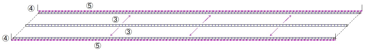 ③ 3列のパイプのうち、両側の2列の直管パイプを両端にそれぞれ移動させる。